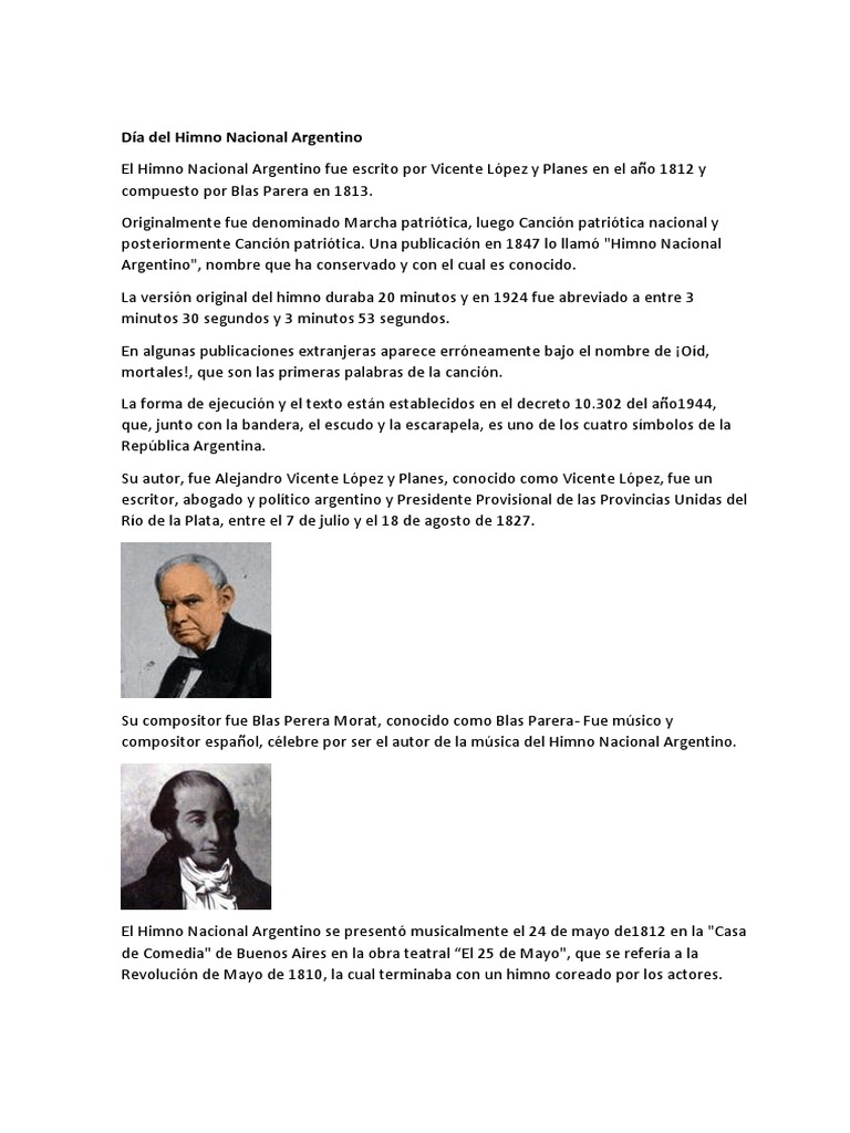 El himno nacional argentino se interpreta por primera vez en la casa de maría sánchez de thompson, el 14 if the file has been modified from its original state, some details may not fully reflect the modified file himno nacional argentino. Vicente lópez y planes música:
